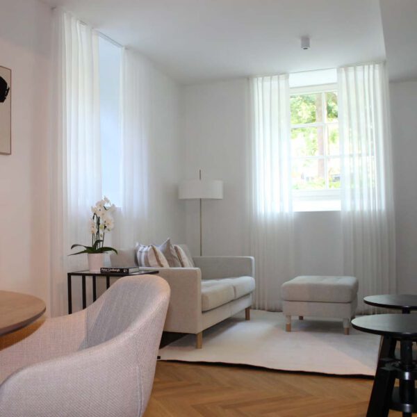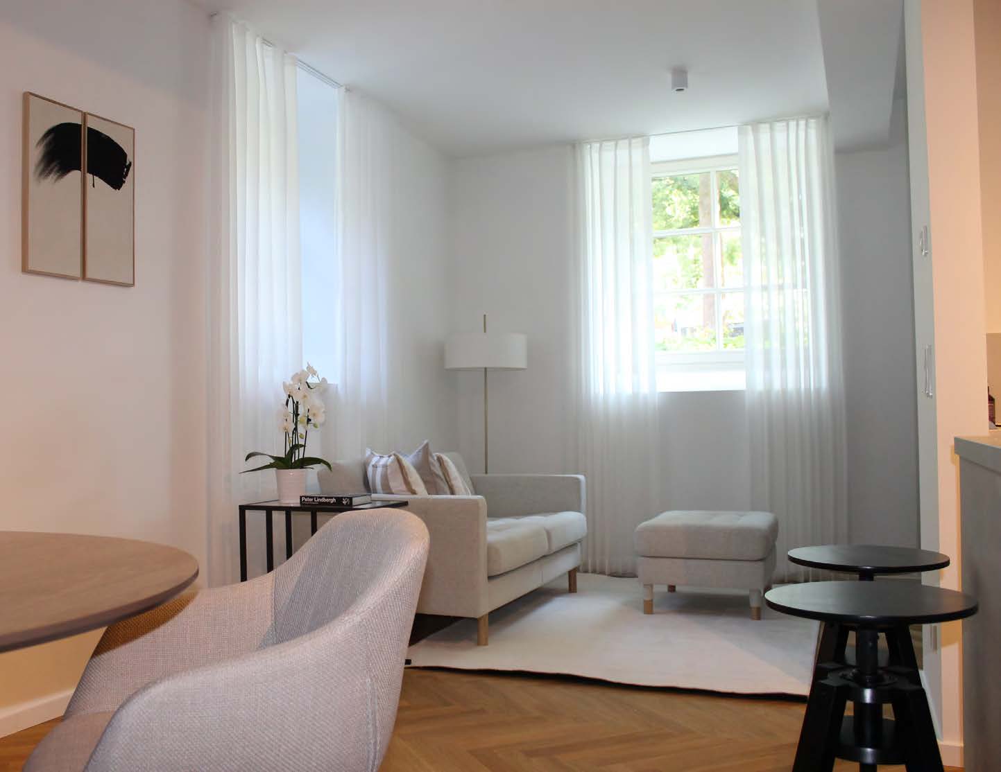 Heute präsentiert sich das zentral gelegene Gebäude als exklusive Wohnimmobilie mit fünf Eigentumswohnungen, teils mit Gartenanteilen und Garage. Ein durchdachtes Sanierungskonzept verbindet historischen Charme mit zeitgemäßer Ausstattung: Die Fassade erhält ein elegantes Farbkonzept, Fenster und Türen werden hochwertig erneuert, die Wärmeversorgung erfolgt künftig über eine energiesparende Holzpelletsheizung. Im Inneren setzen edle Holzböden, sorgfältige Wand- und Deckengestaltung mit Stuckelementen sowie moderne Bäder mit Markenobjekten stilvolle Akzente. Auch das Treppenhaus wird behutsam im Altbaucharakter überarbeitet – unter Einhaltung aktueller Standards. So entsteht eine Immobilie, die Geschichte, Lage und hochwertige Wohnqualität in idealer Weise vereint.